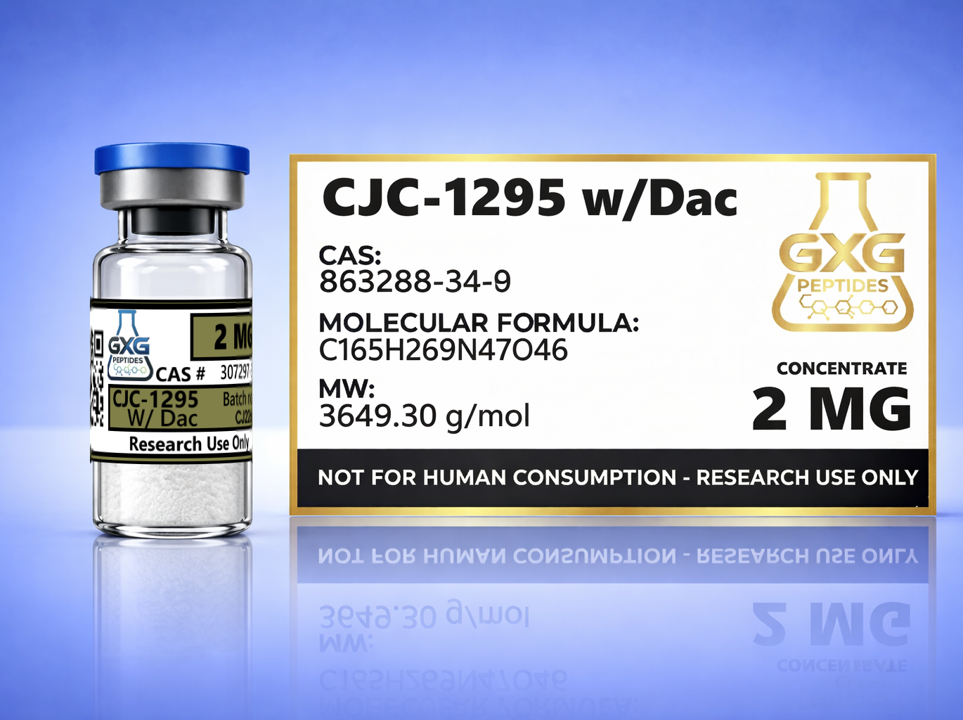 CJC-1295 with DAC is a synthetic peptide, analog of the growth hormone-releasing hormone. Though CJC-1295 without DAC has the same effect and stimulates the production and secretion of growth hormone, the addition of Drug Affinity Complex (DAC) is what increases its half-life allowing it to act longer and more potently.