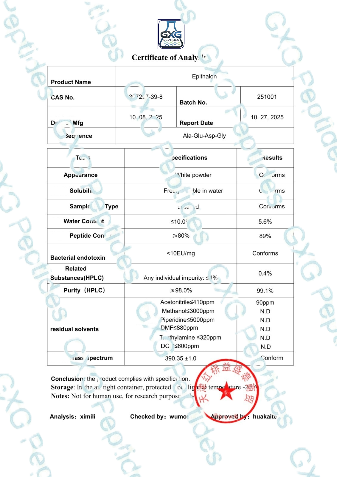 EPITALON Peptide Vial (10mg) – >99% Purity | Research Use Only