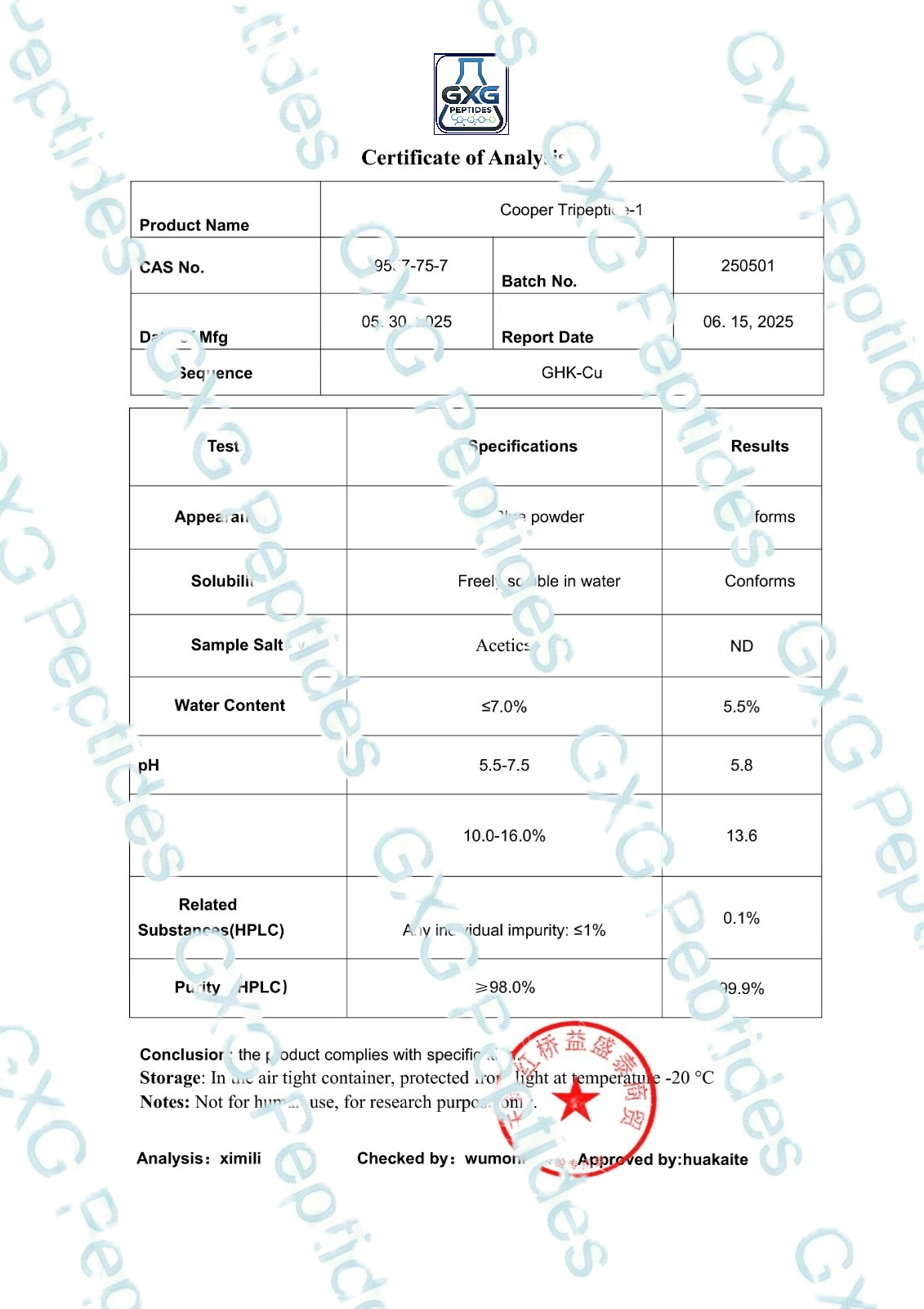 GHK-Cu 50 mg (copper(II)–Gly-His-Lys complex) is a premium, lyophilized research-use-only (RUO) peptide–metal complex supplied at ≥99% purity (HPLC & MS verified). This well-characterized tripeptide chelate is used in in-vitro, cell-based, and biochemical workflows exploring copper delivery, ECM marker expression, and peptide–metal interactions under tightly controlled conditions. Each lot ships under cold-chain with batch-level QR traceability and COA access.