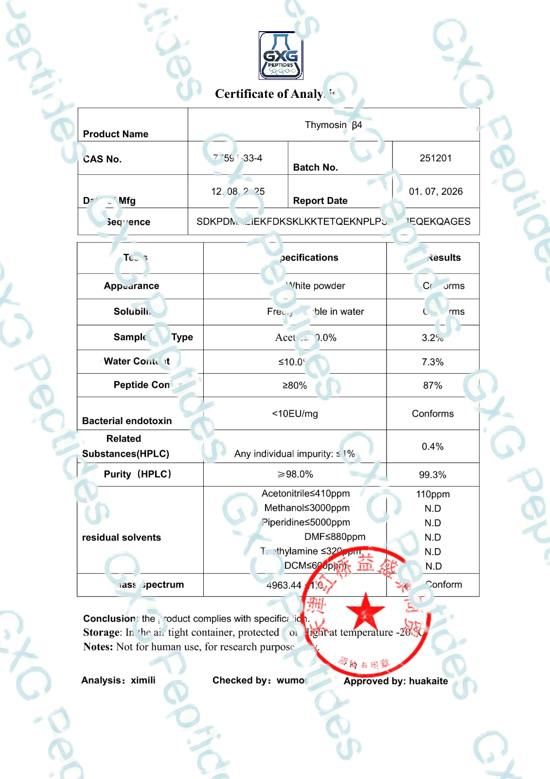 • Handling: Allow vial to reach room temperature before opening to minimize condensation. Use sterile technique and neutral-pH buffers; consider carrier protein to mitigate surface adsorption.